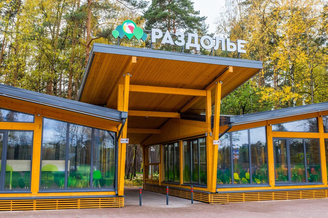 На территории парка расположены несколько кафе и зона фуд-корта: пиццерия «Пицца в Раздолье», WOW! Пончики и ярмарочные домики.