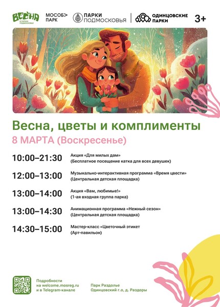 Милые дамы и, конечно, их обаятельные спутники, приглашаем вас на празднование Международного женского дня в наших парках!