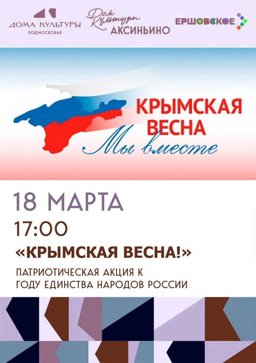 Приглашаем всех на праздничное мероприятие «Крымская весна», которое пройдет 18 марта в лесопарке Супонево 🇷🇺