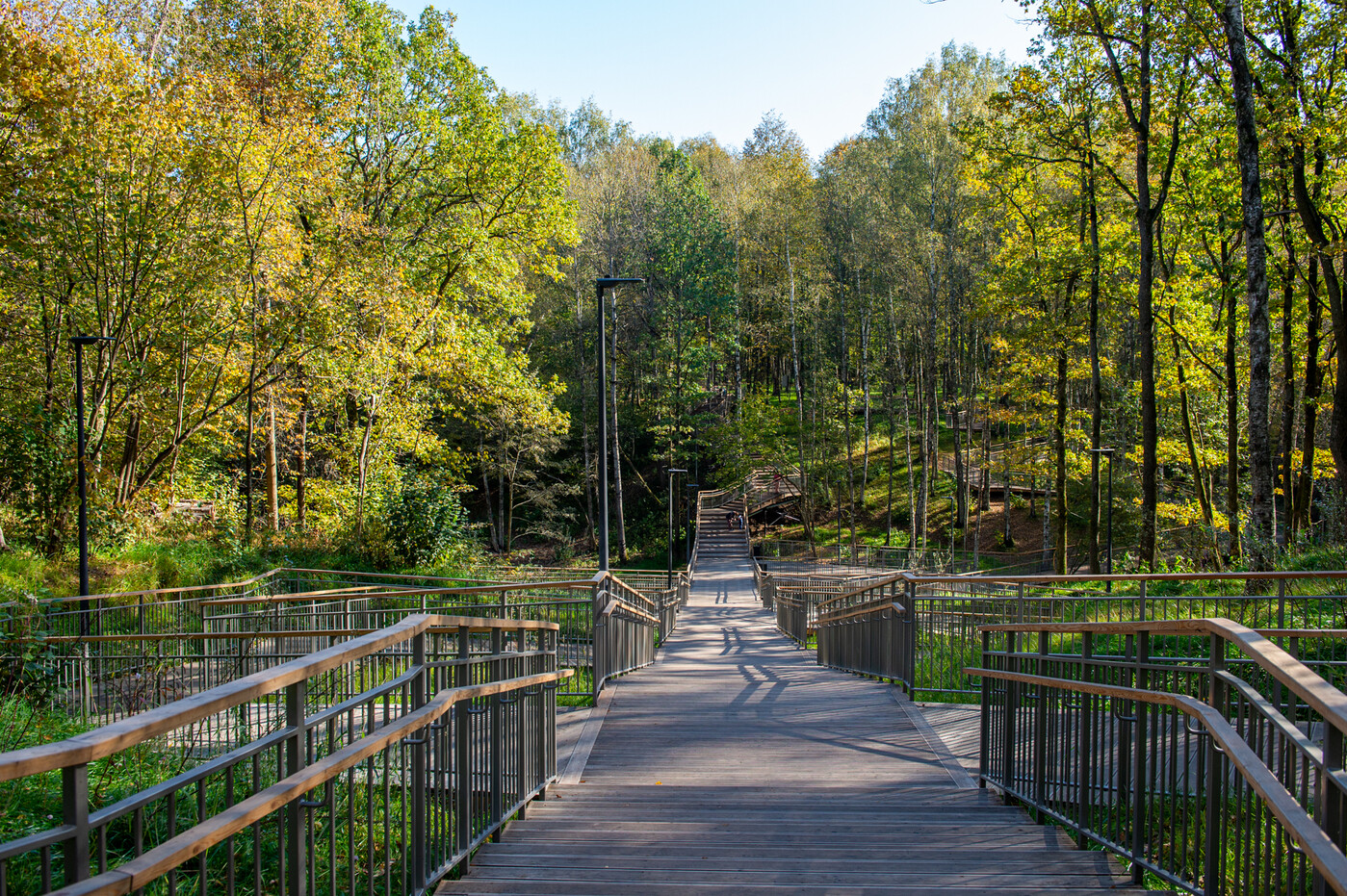 Для любителей пеших прогулок оборудовано 15,4 км освещенных пешеходных дорожек, которые позволяют увидеть самые красивые места нашего леса — уютный пруд с утками, липовую аллею и каскадные водопады.