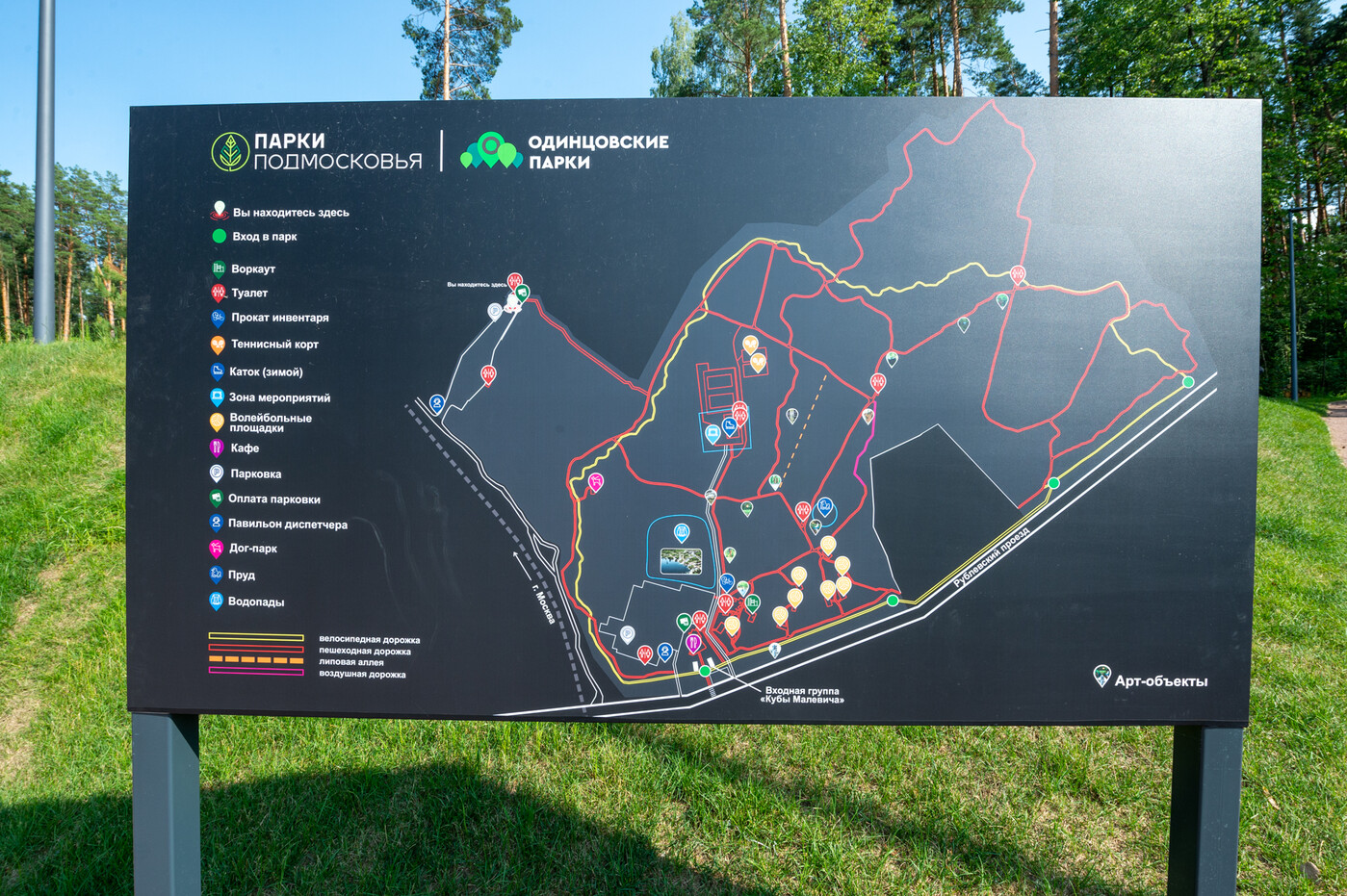 Парк Малевича — это современная парковая территория для активного досуга, объединяющая отдых на природе, искусство и спорт.