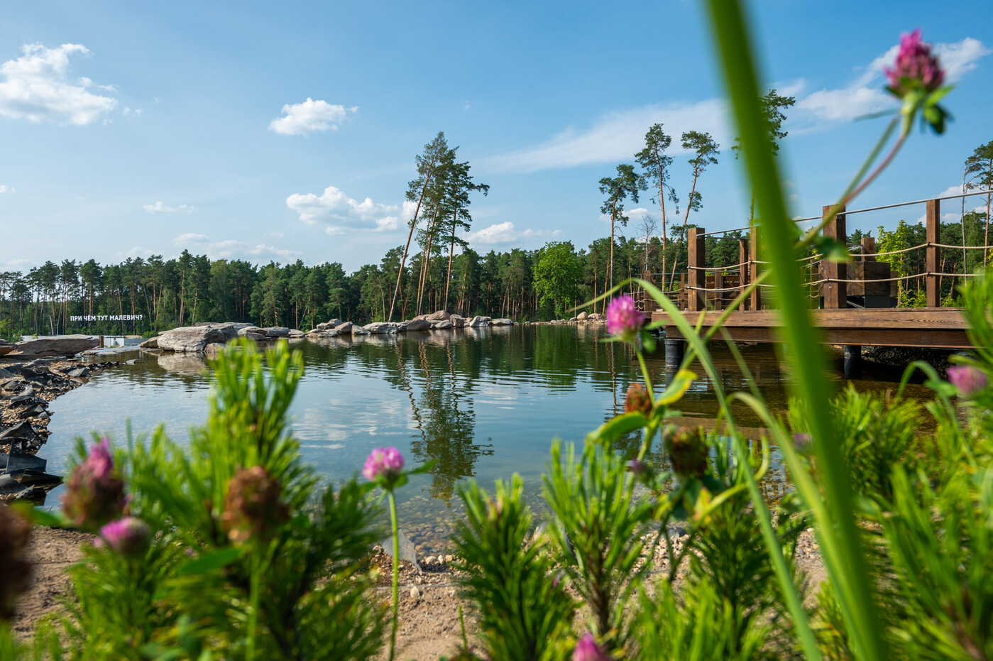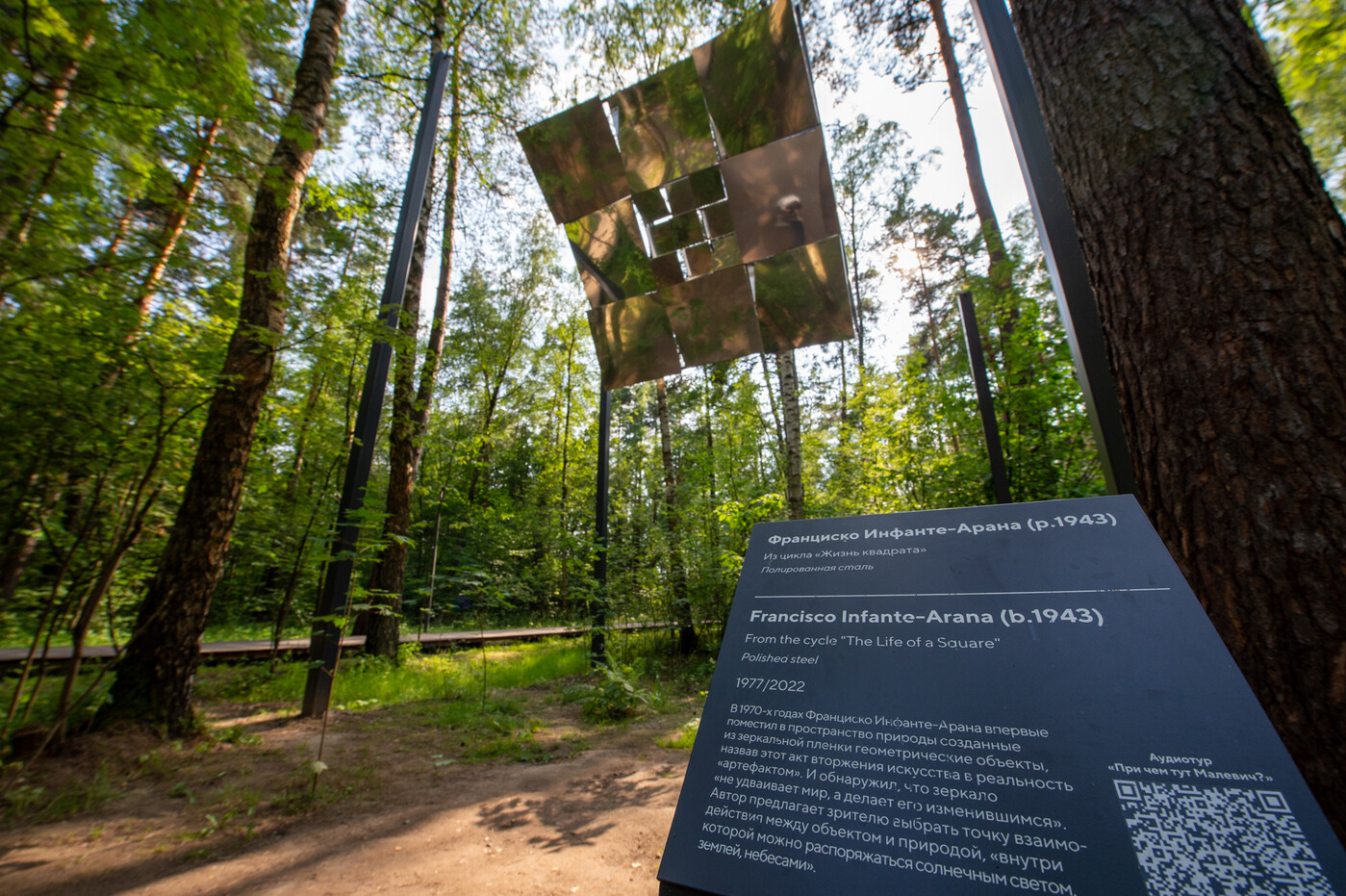 По легенде, всемирно известный художник-авангардист любил гулять в этих местах. Отсылки к его творчеству ждут гостей сразу при входе: арт-объект, который является входной группой, создал скульптор Григорий Орехов по мотивам картины «Черный квадрат». Также на территории расположилась арт-выставка под открытым небом «При чем тут Малевич?».