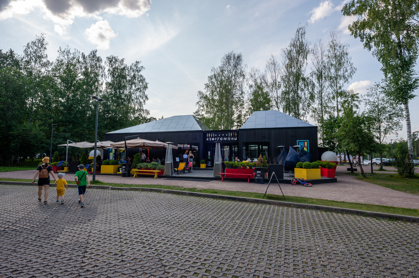На территории парка вы можете попробовать авторскую кухню двух кафе: яркие «Спортсмены» и их минималистичный авангард, гриль-кафе «Malevich» с нотками фьюжн.