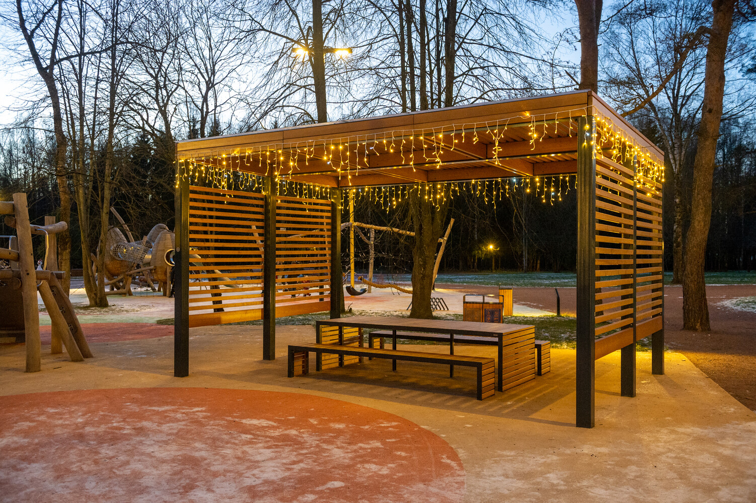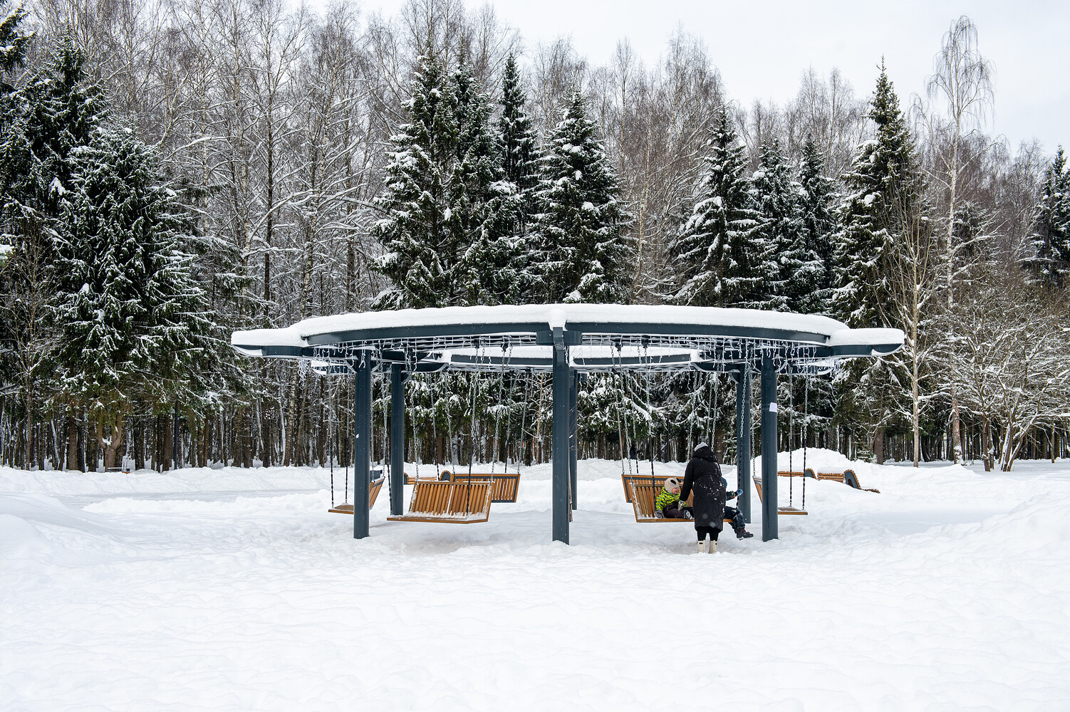Одной из точек притяжения является современная мангальная зона. Она расположена на удалении от основных функциональных зон и жилых массивов у восточного и южного входов в парк и представляет собой несколько атмосферных беседок, где гости могут отлично провести время в кругу друзей и близких.