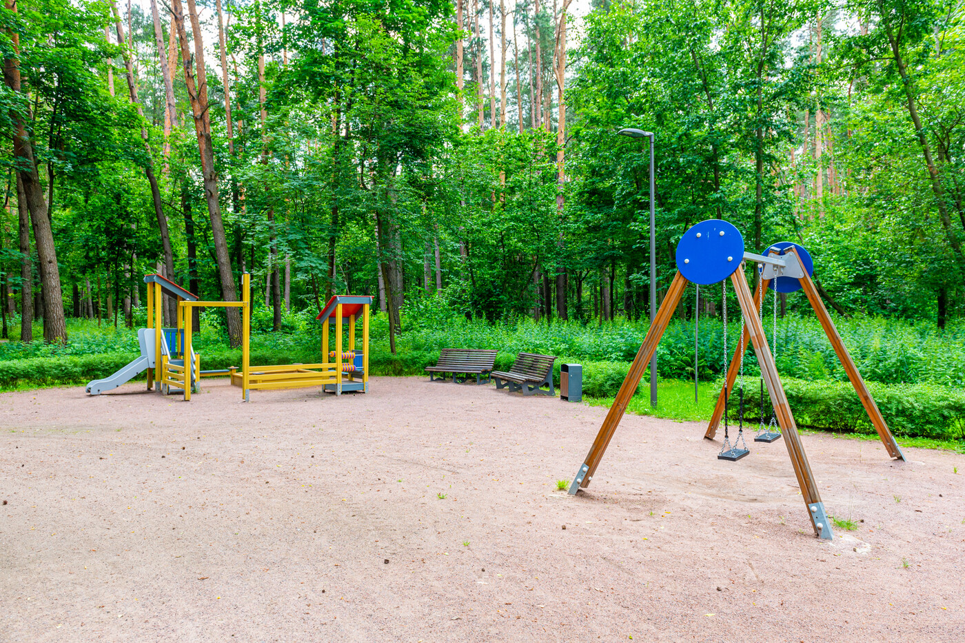 Современная инфраструктура парка включает в себя благоустроенные пешеходные дорожки, специальную площадку для выгула собак, детскую игровую зону, спортивную площадку с воркаут-оборудованием, комфортные зоны отдыха с лежаками на берегу реки, а также живописные деревянные набережные.