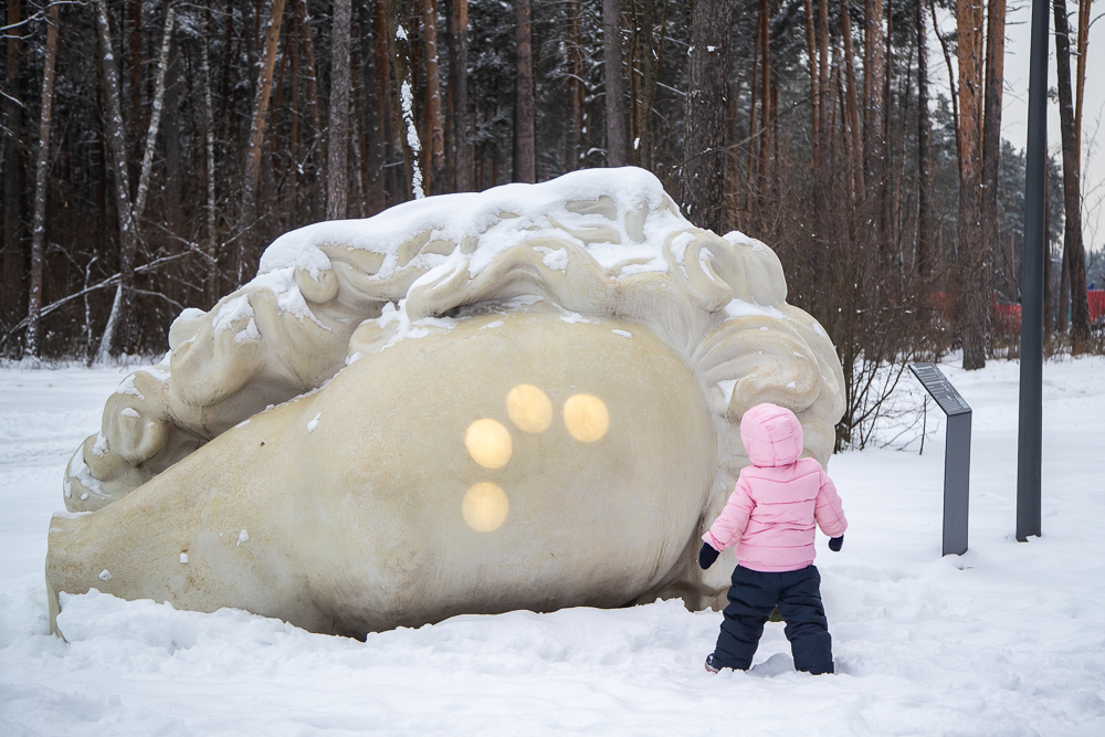 Снова Игорь Шелковский и еще один человек из его серии «Люди». Здесь особенно хорошо видно, что объекты Шелковского масштабны, но они не доминируют над ландшафтом, не подавляют природу, а наоборот пропускают ее сквозь себя, становятся ее частью. Люди одновременно и колоссальны, и будто очень хрупки.