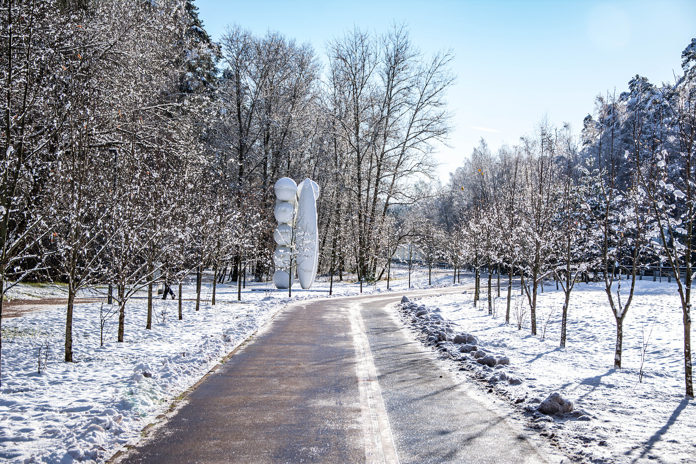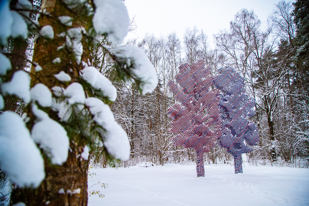 «Человек бегущий» Игоря Шелковского происходит из серии, над которой художник работает с начала 2000-х годов. Именно «Люди» были впервые переведены мастером в масштаб городской скульптуры. Конструктивное мышление Шелковского, собирающего из линейных структур вариативные композиции, сближает его творчество с экспериментами русского авангарда. Один из главных исследователей творчества Шелковского Евгений Барабанов настаивает на важном различии между философией конструктивистов и пластическим сознанием Шелковского, в основе которого — «человек как «мера всех вещей». «Человек бегущий» будет встречать посетителей на входе. «Человек сидящий» того же Шелковского, прежде открывавший маршрут, сменил локацию и теперь поджидает посетителей в чаще липовой аллеи.
