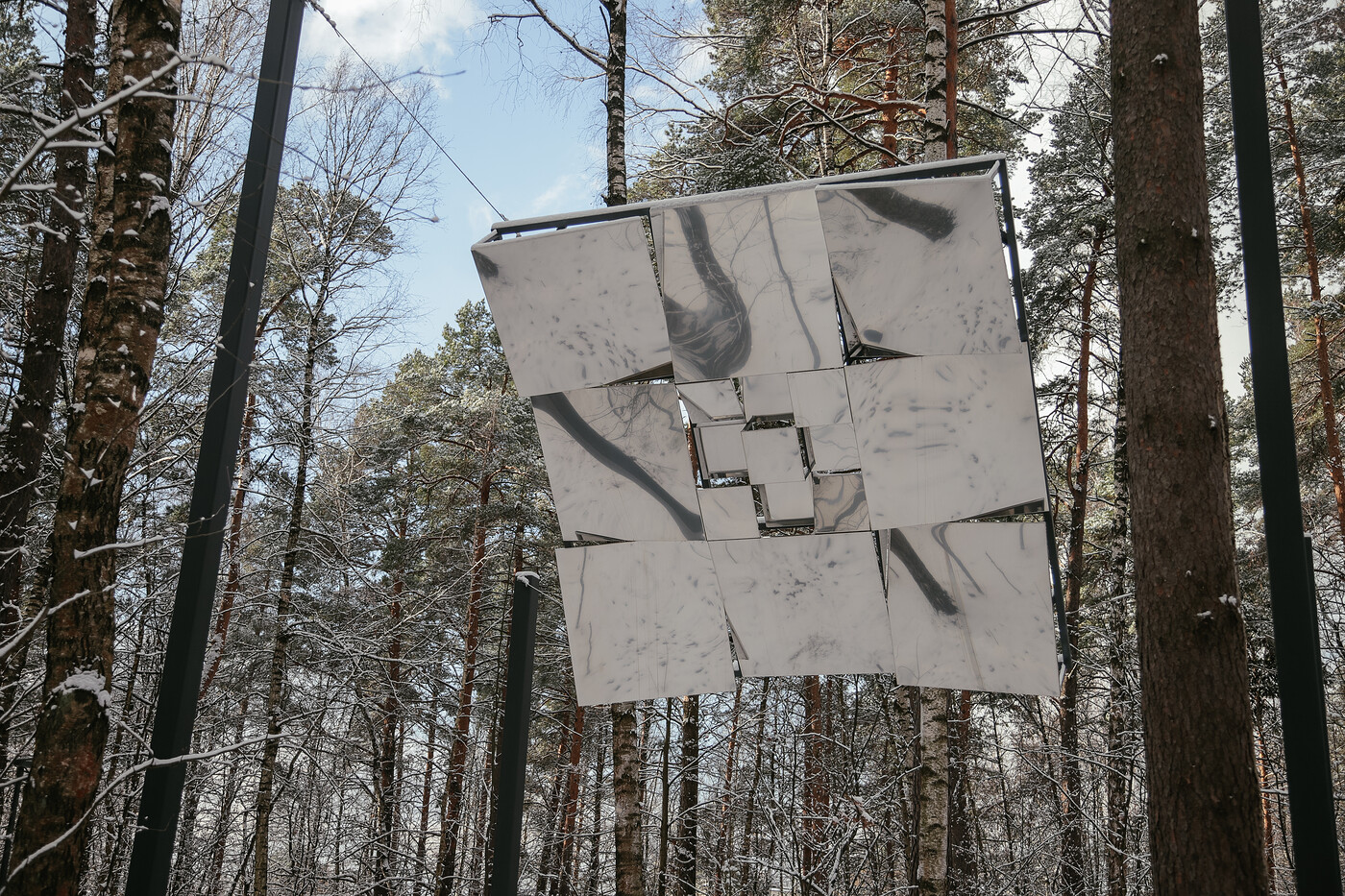 Франциско Инфанте переносит квадрат в пространство природы. Его квадрат, в отличии от Малевича не перекрывает нам изображение, напротив, он зеркально отражает небо, деревья и травы, мы можем проникнуть взглядом даже сквозь него. Он будто становится частью природы.